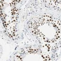 Immunofluorescent staining of human cell line A-431 shows localization to nucleoplasm.