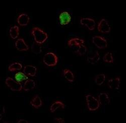 The key lies in the two-protein complex RAG recombinase, which orchestrates a cut-and-paste shuffling of a vast array of pre-existing variable (V), diversity (D), and joining (J) genes in developing B and T cells. Through its catalytic component RAG1, illustrated to the right in the nuclei of REH cells, the rag recombinase recognizes specific DNA sequences positioned at the boundaries of V, D, and J segments called Recombination Signal Sequences (RSS). Stabilized by RAG2, RAG1 nicks the top strand upstream of the RSS, leaving a hydroxyl group free to attack the bond of the opposite strand to produce a double stranded break. This cleavage event occurs in partnership with a matching RSS, creating a gene segment with four ends: two coding hairpins, and two blunt ends. Cellular repair machinery then opens these gene segments, and upon RAG recombinase-mediated histone ubiquitination, enzymes involved in non-homologous end joining (NHEJ) glue the two coding ends together. The result is a rearranged combination of V, D, and J segments that constitutes the antigen-binding part of TCR and Ig molecules.
